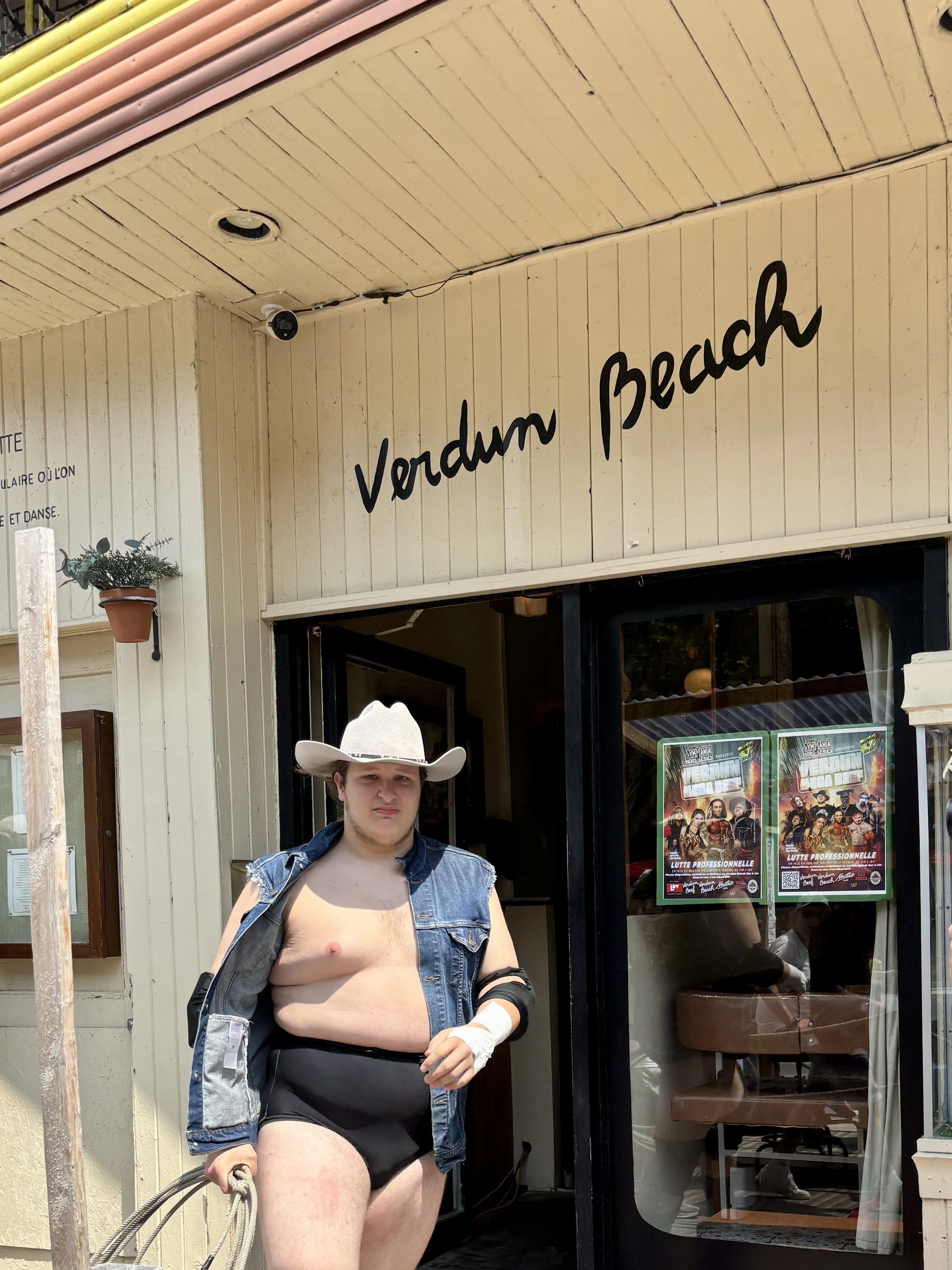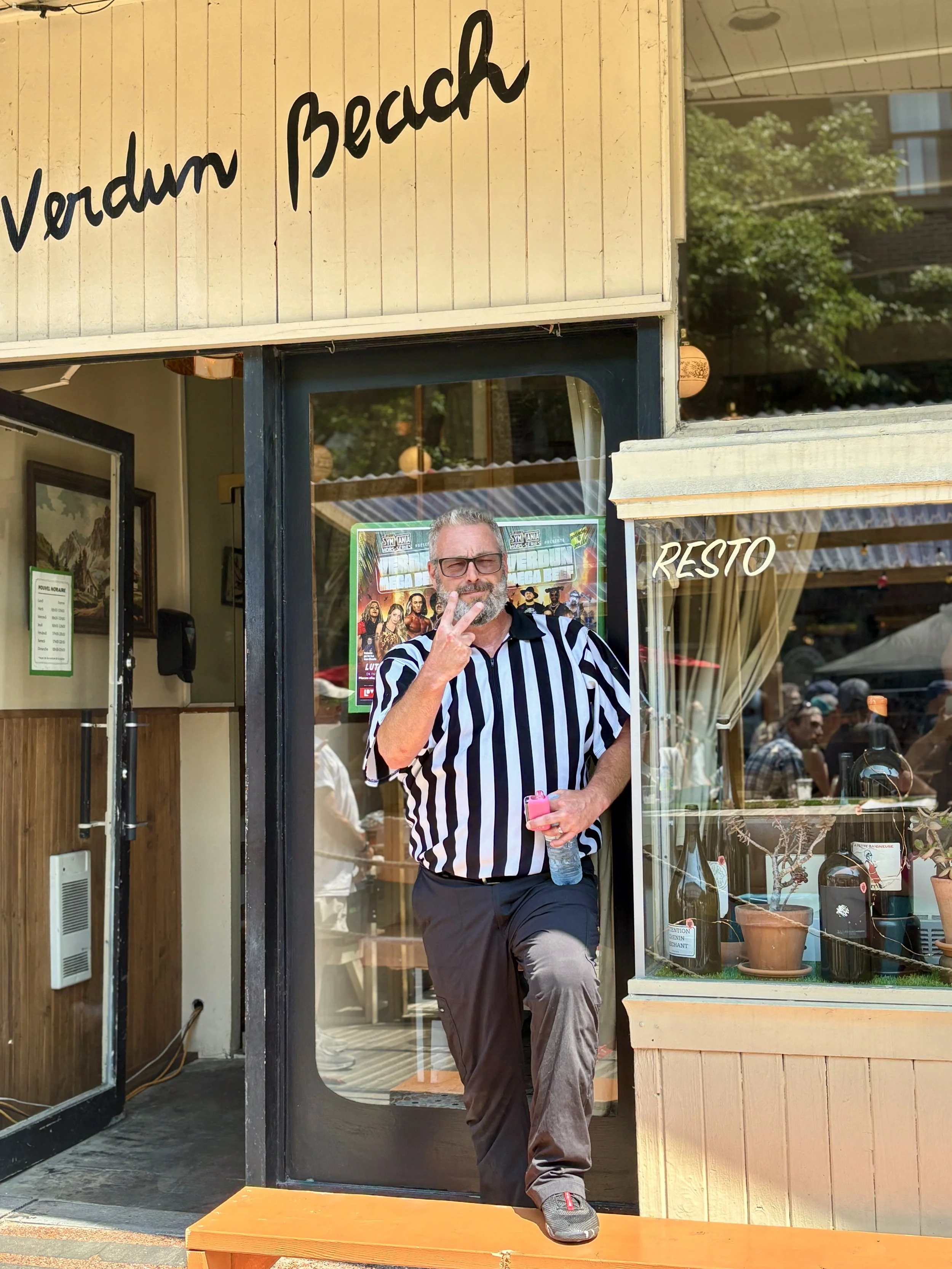 My week started off last Sunday with the decision to do something I have never done before. I was given an assignment from my Unstrayed writing group to go out and check out something I don’t normally pay attention to and then to write about it. I was also invited to share some kind of memorabilia from the event with a fellow writer whose job was to do the same for me. What could be better for an out of the ordinary experience than to book myself a seat at the table for the first annual Verdun Mega Beef wrestling matches that were going to take place on the pedestrianized main street of my beloved new neighbourhood? I throw caution to the wind, deciding that this is a great opportunity to spend some time in a world with which I am unfamiliar and promising myself that whatever happens I will certainly be inspired to write something about this otherworldly experience.
