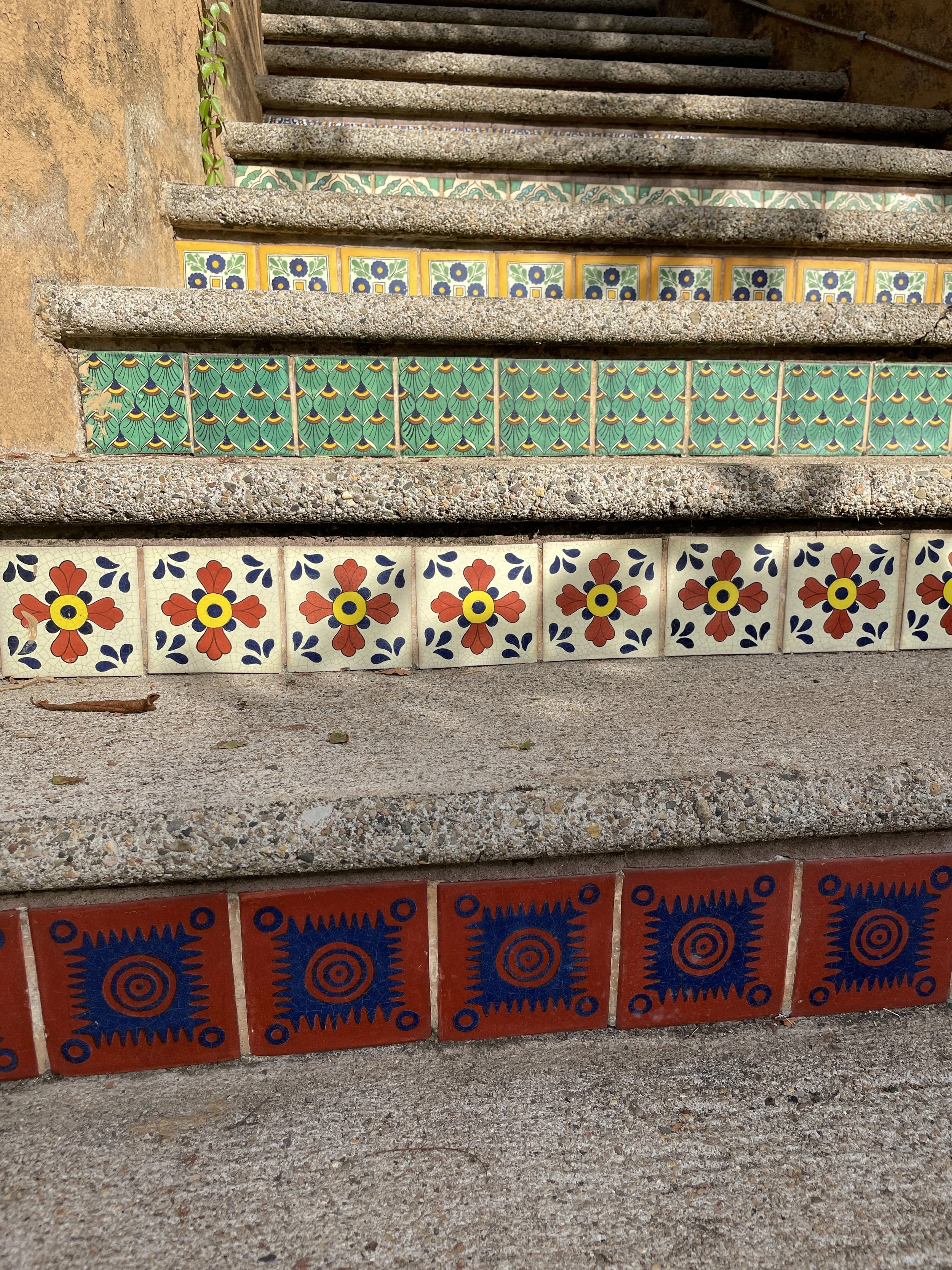 Artisanal tiles on a staircase at Mar de Jade by Sandra Butel